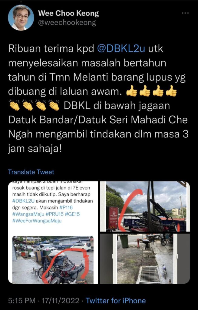 Bila nampak masalah, memang saya akan voice out supaya tindakan diambil. Terima kasih kepada DBKL kerana bertindak segera. Inilah perkhidmatan yang pengundi Wangsa Maju nak!